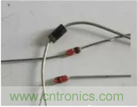 (c)電解電容的實物照片 圖F1-9 電解電容 一般地,電容封裝形式名稱的后綴數值越大,相應的電容容量也越大,如圖F1-9所示。(3) 二極管。二極管的種類繁多,根據應用的場合不同可以分為普通二極管、發光二極管、穩壓二極管、快恢復二極管以及二極管指示燈、由多個發光二極管構成的七段數碼管等,如圖F1-10所示。