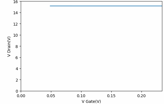 對于IRF450的擊穿電壓測試曲線,當電壓超過600V的時候,漏極電流激增。這與該期間的數(shù)據(jù)手冊上標稱的耐壓基本相當。