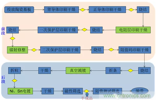 【制造方式】電阻層印刷 烘干 高溫燒結