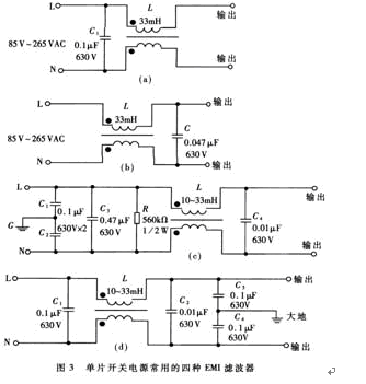 • 單片開關電源采用簡易式單級EMI濾波器