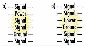 由於信號層和回路層之間總是隔有絕緣層,在10層板設計中分配中間6層來走信號線的方案并非最佳。另外,讓信號層與回路層相鄰很重要,即板布局為信號、地、信號、信號、電源、地、信號、信號、地、信號。