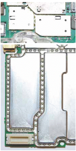 圖4.手持式電腦上的PCB板采用了熱成型多腔屏蔽體