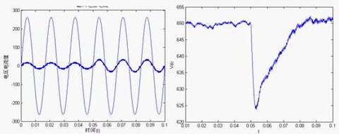 圖6輸入a相電壓和電流穩(wěn)態(tài)波形圖7輸出直流電壓穩(wěn)態(tài)波形