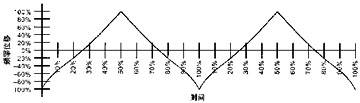 對(duì)EMI減弱的調(diào)制波形的整形是很關(guān)鍵的。調(diào)制的方案用來實(shí)現(xiàn)最大減小EMI,如圖4所示。調(diào)制周期在X軸上以周期長(zhǎng)度的百分比為單位。Y軸表示不同的頻率值,也是以總擴(kuò)展頻率的百分比為單位。