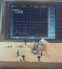 如圖2所示,不論是選擇加工還是購買環天線,兩個環天線都必須被小心地放置在相互垂直的位置上,以便獲得兩天線之間的最小耦合;而用于支撐測試裝置的平臺則可以簡單的用木頭和塑料來實現。如前所述,測試裝置中的一個探頭會被連接到RF掃頻源,而另一個探頭則會被連接到掃頻接收機上。如果測試試驗室內裝備有矢量網絡分析儀,那么只要其RF信號源和接收端口之間的隔離度大于70dB,則綜合了頻譜分析儀功能和掃頻信號源功能的網絡分析儀就能很好的完成本項測試任務。另外,測試過程中環天線必須被固定在介質材料上,例如木頭和塑料。基本的測試裝置并不復雜,通過在木塊上插入螺絲釘就可以得到一個如圖2所示的簡單的測試裝置。