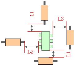 1.我們要注意貼片器件(電阻電容)與芯片和其余器件的最小距離芯片:一般我們定義分立器件和IC芯片的距離0.5~0.7mm,特殊的地方可能因為夾具配置的不同而改變