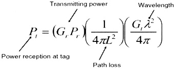 從幾個(gè)要素中,我們發(fā)現(xiàn)UHF頻段的讀寫距離在4~5米,從經(jīng)典的無線傳輸模型公式(1)中