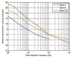 對于帶有QP檢波器的接收機上的常數指標,圖3表明了CISPR 16-1-1標準描述的幅度和重復頻率之間的關系。