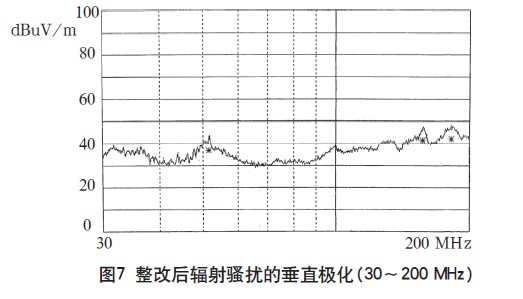 由測試結(jié)果可以看出,通過電磁兼容設(shè)計(jì)在傳導(dǎo)騷擾抑制方面取得了良好效果,在高頻段輻射騷擾的設(shè)計(jì)也達(dá)到了預(yù)期效果,下面還需對(duì)在30~200MHz頻段范圍內(nèi)的輻射騷擾進(jìn)行改進(jìn)設(shè)計(jì)。