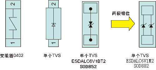 正當(dāng)單線保護(hù)器件被廣泛用于抑制ESD放電時(shí),一種在同一封裝內(nèi)集成兩個(gè)并聯(lián)二極管的兩級(jí)鉗位概念產(chǎn)生了。圖1對(duì)傳統(tǒng)的單線ESD保護(hù)與新型兩級(jí)鉗位二極管組件進(jìn)行了對(duì)比。