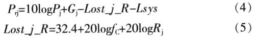 設(shè)發(fā)射系統(tǒng)的發(fā)射功率為Pc,單位為W;發(fā)射天線增益為Gc,單位為dB;發(fā)射距離為Rc,單位為km;信號傳輸損耗為Lost_r_R,單位為dB;信號頻率為fc,單位為MHz。發(fā)射信號到達接收系統(tǒng)的功率為: