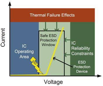 另外,先進的系統(tǒng)級芯片(SoC)設計都是采用幾何尺寸很小的工藝制造的。為了優(yōu)化功能和芯片尺寸,IC設計人員一直在不斷減少其設計的功能的最小尺寸。IC尺寸的縮小導致器件更容易受到ESD電壓的損害。