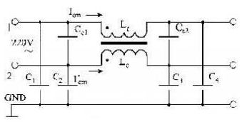 帶共模電感的EMI濾波器的元件參數,不能按沒有互感的濾波器所得到的公式進行計算。通常要先決定所采用的電路結構,然后利用共模等效電路,用網絡分析理論,求出它的共模插入損耗。