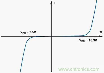 重要的是要確保TVS的擊穿電壓在受保護(hù)引腳的正常工作范圍之外。CDSOT23-SM712的獨(dú)有特性是具有+13.3 V和–7.5 V的非對(duì)稱擊穿電壓,與+12 V至–7 V的收發(fā)器共模范圍相匹配,從而提供最佳保護(hù),同時(shí)最大程度減小對(duì)ADM3485E RS-485收發(fā)器的過壓應(yīng)力。