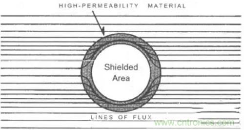 b、對磁場的屏蔽需要鐵磁材料,如高導磁率合金和鐵。主要的屏蔽機理是吸收而不是反射。