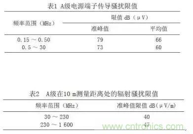 根據(jù)鐵路客運(yùn)專(zhuān)線(xiàn)標(biāo)準(zhǔn)規(guī)定,傳導(dǎo)騷擾限值和輻射騷擾限值如表1、2所示。