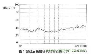 由測(cè)試結(jié)果可以看出,通過(guò)電磁兼容設(shè)計(jì)在傳導(dǎo)騷擾抑制方面取得了良好效果,在高頻段輻射騷擾的設(shè)計(jì)也達(dá)到了預(yù)期效果,下面還需對(duì)在30~200MHz頻段范圍內(nèi)的輻射騷擾進(jìn)行改進(jìn)設(shè)計(jì)。