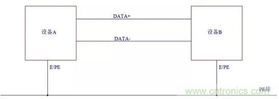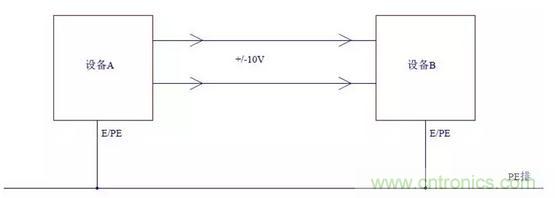 如下圖所示,如果兩個設(shè)備的零電位沒有很好的連接,即使設(shè)備A輸出的電壓信號是穩(wěn)定的,當(dāng)設(shè)備B的輸入端接收到時也會變?yōu)椴环€(wěn)定的。