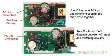 您是否有過在顯著加強輸入濾波器后 EMI 改善效果很小甚至沒有改善的這種遭遇?這很有可能是因為有一些來自某個高 dV/dt 節點的雜散電容直接耦合到輸入線路,有效繞過了您的 CMC。為了檢測這種情況,可臨時短路 PCB 上 CMC 的繞組,并將一個二級 CMC 與電路板的輸入電線串聯。如果有明顯改善,您需要重新布局電路板,并格外注意輸入連接的布局與布線。
