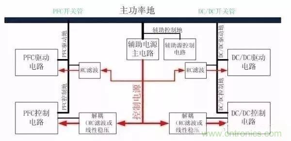 2.DC-DC部分的驅(qū)動地和控制地接DC開關(guān)管部分的采樣地;
