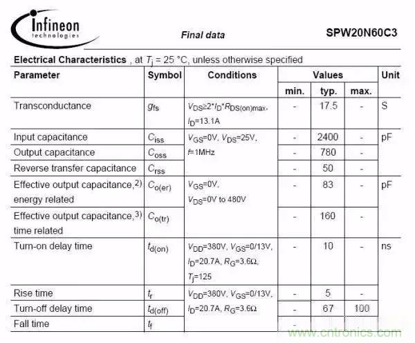 參照以上兩圖,是不同型號的MOS管,對比下輸入結(jié)電容和輸出結(jié)電容,2400PF與800PF;780PF與2200PF;一看就知道第一個規(guī)格是快管,第二個是慢管,這時候決定開關(guān)速度還要與驅(qū)動電阻匹配;常規(guī)情況驅(qū)動電阻在10R-150R比較多,選取驅(qū)動電阻與結(jié)電容有關(guān),針對快板驅(qū)動電阻可適當增大,慢管驅(qū)動電阻可適當減小;