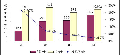 - 2008年仍保持了平穩快速增長,前三季度市場銷售量達到117.2萬臺,同比增長率為85.5%