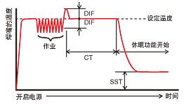 一定時間不使用,焊嘴將自動的降溫(時間和溫度可自由設定),減輕焊嘴的因空燃燒導致的焊嘴氧化。也可以和「自動關機功能」一起并用。