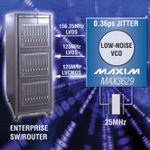 MAX3627和MAX3629具有優異的電源噪聲抑制(PSNR),能夠最大程度地減小嘈雜電源對抖動性能的影響,使系統整體抖動指標的劣化最小,提高系統時鐘設計的質量,同時也節省了電路板空間和成本。MAX3627/MAX3629可理想用于以太網接口,例如:企業交換機、路由器及其它需要低抖動以太網時鐘的高速數據通信系統等。