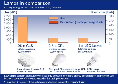 歐司朗光電半導體實施的首次 LCA 顯示,即使將累積能源輸入和環境因素考慮在內,LED 燈仍然是可替代白熾燈的理想產品。