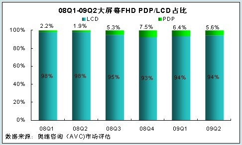 • 2009年上半40英寸以上等離子在大屏幕FHD市場占有率6.0%,同比增加4.0%