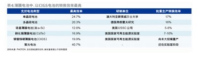 從成本來看,中投證券認為,盡管晶體硅價格暴跌,CIGS仍具成本優勢。首先,由于CIGS電池尚未達到量產,通過成本細拆,參照工藝類似的第一太陽能的成本構成(主要是設備折舊、玻璃、材料和人工等四項),在規?;?,CIGS薄膜電池的成本約為1.07美元/瓦,已遠低于目前的晶體硅電池成本。其次,CIGS電池采用相對廉價的玻璃為襯底,這樣所需的稀有元素耗損量大為減少;另外,CIGS電池的弱光效應較好,對光照的要求降低,運行時間遠高于晶體硅電池。