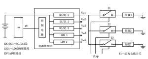 圖6就是一種負(fù)載管理的結(jié)構(gòu)示意圖。在圖中,電源管理IC有5路輸出(3路DC/DC轉(zhuǎn)換器、2路LDO)。DC/DC1的輸出供3個并聯(lián)的負(fù)載1~負(fù)載3。為了控制負(fù)載1~3的通電或斷電,在DC/DC1與3個負(fù)載之間加接了3個負(fù)載開關(guān)(負(fù)載開關(guān)1~3),其控制端接微處理器I/O口,由微處理器控制其通、斷來實現(xiàn)負(fù)載管理。[page]