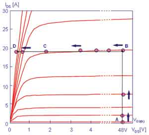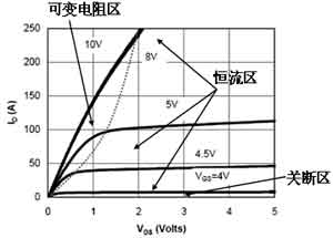 - 功率MOSFET動態經過是關斷區、恒流區和可變電阻區
