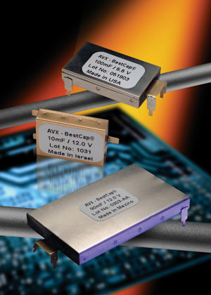 脈沖超級電容器的封裝也在不斷發(fā)展,主要朝向小占板面積和低高度方向。例如,AVX的BestCap®系列超級電容器大約8年前就面市了,包括了具有標準28mm×17mm尺寸和48mm×30mm大尺寸的型號,厚度范圍是2.0mm~6.0mm。目前,已經(jīng)開發(fā)出了小尺寸(20mm×15mm)的型號,更加微小尺寸(15mm×12mm)的型號也正在開發(fā)中(見圖1)。這些超級電容的結(jié)構是非常堅固的,具有精密鋼質(zhì)外殼。所有內(nèi)部單元部件都采用環(huán)保材料、無有機溶劑的水溶性材料制造,這些相同的單元部件會構成單元陣列。由于采用實體封裝和相同的結(jié)構,可以承受超過1000g的重力加速度沖擊,而且這些內(nèi)部單元的工作溫度范圍是-40~+75℃。