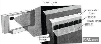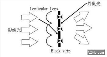 LenticularLens除了可以收斂遮光部開(kāi)口位置的光線之外,它還會(huì)將入射的影像光線擴(kuò)散到水平方向,此外LenticularLens為了支援高解析度(HD)影像,因此要求非常微細(xì)的鏡片間距(LensPitch),因?yàn)榇执蟮溺R片間距可能會(huì)導(dǎo)致FresnelLens、LenticularLens與投影影像畫(huà)素出現(xiàn)波紋。