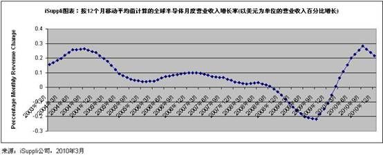 據(jù)iSuppli公司,按12個(gè)月移動(dòng)平均值計(jì)算,2010年月度半導(dǎo)體營(yíng)業(yè)收入將以史上最強(qiáng)勁的速度反彈。