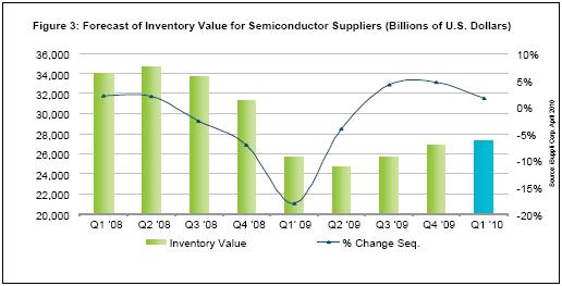 - 09年第四季度,全球所有半導(dǎo)體供應(yīng)商的庫存合計(jì)為268億美元