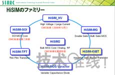 廣島大學從2005年開始就一直與豐田和豐田中央研究所共同研究普通車載用IGBT(insulated gate bipolar transistor)的模型。IGBT組合使用了雙極晶體管和MOSFET,而聯合研究小組則推導出可不分離這兩個晶體管,而整體模擬IGBT的模型公式,從而開發出了HiSIM-IGBT。制成一體化模型是為了精確表達兩個晶體管之間的相互作用。