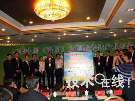 在2009年4月28日舉行的中國(洛陽)太陽能光伏產業年會上,尚德太陽能電力控股(Suntech Power Holdings)、英利集團(Yingli Group)、晶澳太陽能(JA Solar Holdings)、洛陽中硅高科技、重慶大全等13家中國太陽能電池制造大廠商注)齊聚一堂,通過了名為《推動光伏發電“一元工程”建設倡議書》的“洛陽宣言”。宣言中稱,整個業界將團結一致,力爭在2012年使太陽能發電成本實現1元/kWh。這一目標達成的話,在中國便可實現“市電同價”(Grid Parity,太陽能電池發電的成本與電價相等),從而催生出巨大的國內市場。