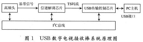 USB數字電視接收棒系統主要有以下4個模塊構成,如圖1為系統的原理圖。