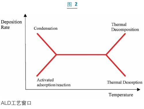 [page]由于A(yíng)LD是基于在交互反應(yīng)過(guò)程中的自約束性生長(zhǎng),此工藝必須經(jīng)過(guò)精細(xì)的調(diào)節(jié)來(lái)達(dá)到最合適的結(jié)果。即使原子層淀積唯一的表面反應(yīng)特征降低了正常化學(xué)氣相淀積對(duì)溫度、壓力和組分的嚴(yán)格要求,人們?nèi)匀恍枰獌?yōu)化ALD的參數(shù)以實(shí)現(xiàn)其準(zhǔn)確的厚度控制和超級(jí)的保型性。反應(yīng)室溫度是用來(lái)控制表面飽和的重要參數(shù)之一,作為ALD的基礎(chǔ),反應(yīng)室溫度起著兩個(gè)主要作用:提供原子層淀積反應(yīng)所需的激活能量和幫助清除單原子層形成過(guò)程中的多余反應(yīng)物和副產(chǎn)品。單原子層形成最理想的ALD溫度窗口,如圖2所示。ALD工藝窗口與反應(yīng)物的選擇、用量以及清除息息相關(guān)。為了獲得完全的單層覆蓋,足量的具有熱穩(wěn)定性的反應(yīng)物,即在反應(yīng)溫度下不會(huì)分解的反應(yīng)物,被引入到襯底上。人們往往使用過(guò)量的反應(yīng)物來(lái)確保實(shí)現(xiàn)完全覆蓋。通常采用以下幾種參數(shù)來(lái)控制反應(yīng)物的劑量:反應(yīng)物源的溫度、流量、分壓以及這個(gè)反應(yīng)室的壓力。