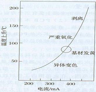 值得注意的是,當(dāng)導(dǎo)體圖形溫度上升到85℃左右時,絕緣材料自身開始發(fā)黃(圖1),電流繼續(xù)通過,最后銅圖形熔斷,特別是多層板內(nèi)層圖形,周圍都是傳熱性差的樹脂,散熱困難,因而溫度不可避免地上升,所以特別要注意導(dǎo)體圖形線寬的設(shè)計。實際上在進行PCB布線設(shè)計時走線線寬主要依據(jù)其發(fā)熱量和散熱環(huán)境來確定的。銅導(dǎo)體的截面積決定了導(dǎo)線電阻(數(shù)字電路中線電阻引起的信號損耗可忽略不計),銅導(dǎo)體和絕緣基材的導(dǎo)熱率影響溫升,進而決定載流量。圖2是普通FR-4覆銅箔板銅導(dǎo)體圖形線寬及截面積與允許電流之間的關(guān)系圖。從圖中可以看出:導(dǎo)體圖形截面積一定,當(dāng)其允許電流值為2A,溫度上升值低于10℃時,對于35Um銅箔,其線寬應(yīng)設(shè)計為2mm:對于70um銅箔,其線寬應(yīng)設(shè)計為lmm。由此得出:當(dāng)導(dǎo)體的截面積、允許電流和溫度上升值一定時,可通過增加銅箔厚度或加大線寬值兩個方面來滿足走線的散熱要求。