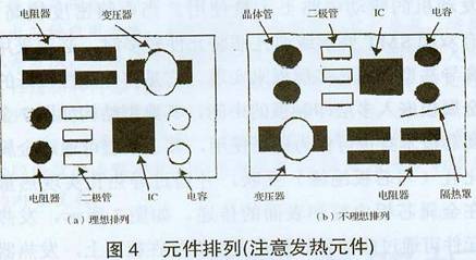 因此,具有相同水平的耐熱元件混合排列時,基本排列順序是:耗電大的元件、散熱性差的元件應(yīng)裝在上風(fēng)處。