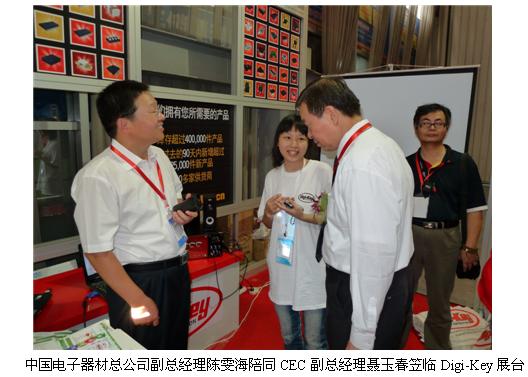 電子展開幕后,中國電子器材總公司副總經(jīng)理陳雯海陪同中國電子信息產(chǎn)業(yè)集團(tuán)有限公司副總經(jīng)理聶玉春蒞臨Digi-Key的展臺(tái),了解Digi-Key的小批量采購服務(wù),歡迎Digi-Key為西部的工程師提供方便快捷的小批量采購服務(wù),并衷心希望Digi-Key在中國有更好的發(fā)展。