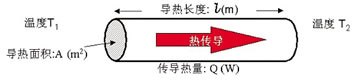 式中:Q為傳導(dǎo)熱量(W);K為導(dǎo)熱系數(shù)(W/m℃);A為傳熱面積(m2);L為導(dǎo)熱長度(m)。(T1-T2)為溫度差。