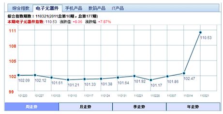 需要特別指出的是,四大成分指數之一的電子元器件指數的漲幅最為明顯,本期指數從3月14日的102.47點,漲到了110.53點,漲幅為7.87%,也是3年來之最??磥?,日本地震對華強北指數的影響也是達到了峰值,也充分說明,華強北電子元器件市場已經受到了日本地震的強烈沖擊。