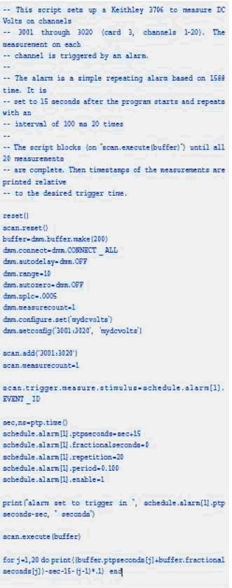 LXI的網絡連接性支持吉時利在3700系列開關/DMM產品中嵌入稱為TSB Embeded的腳本開發工具。用戶能通過儀器本身提供的Web頁面訪問此工具,從而用Web瀏覽器開發和管理他們的腳本,無需在PC上安裝任何軟件。