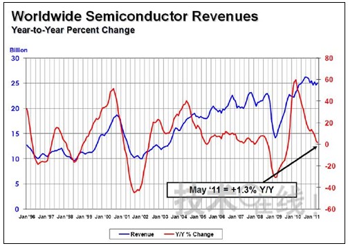 2011年5月全球半導體銷售額僅增長1.8% 出現停滯和衰退