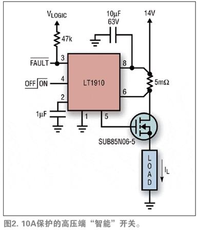 自從功率MOSFET器件推出以來(lái),設(shè)計(jì)師們一直將它們視作繼電器的潛在替代產(chǎn)品。現(xiàn)代N-MOSFET開(kāi)關(guān)的導(dǎo)通電阻值在一位數(shù)毫歐姆范圍內(nèi),允許使用沒(méi)有笨拙散熱結(jié)構(gòu)的標(biāo)準(zhǔn)表面貼裝技術(shù)。目前已經(jīng)開(kāi)發(fā)出了低價(jià)集成電路解決方案,這種方案可提供自含式升壓柵極驅(qū)動(dòng)功能。這些電路還采用了快速故障保護(hù)機(jī)制,這樣MOSFET就永遠(yuǎn)不會(huì)有出現(xiàn)故障的風(fēng)險(xiǎn)。凌力爾特公司的LT1910就是這樣的“智能開(kāi)關(guān)”控制集成電路,該器件利用低阻值高壓端電流檢測(cè)電阻(類(lèi)似圖1(c))檢測(cè)電路過(guò)載,并在發(fā)生損害之前關(guān)斷正在工作的MOSFET。該集成電路一檢測(cè)到過(guò)載情況,就設(shè)置一個(gè)警告標(biāo)記,并周期性地嘗試重新啟動(dòng)該負(fù)載,直到故障清除為止。盡管這個(gè)集成電路本質(zhì)上只是二進(jìn)制,但是就用電流檢測(cè)形成如圖2所示的堅(jiān)固“閉環(huán)”電子繼電器解決方案而言,這是一個(gè)不錯(cuò)的實(shí)例。