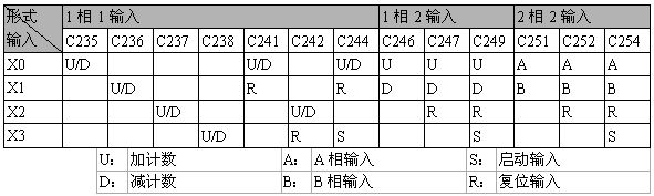 其中輸入點為X0、X1可規劃成更高速的計數器,1相輸入可達20kHz,但這兩個輸入點的計數頻率相加仍必須小于或等于頻寬20kHz的限制。若計數輸入為2相輸入信號,則計數頻率約為4kHz。輸入點X2、X3高速計數器1相輸入可達10kHz。